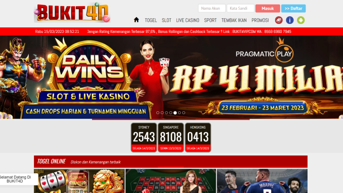 BUKIT4D merupakan slot pulsa terbaik, Dikenal dibandingkan website lainnya sehingga masuk dalam daftar situs judi slot online terpercaya. Oleh sebab itu untuk mengakses yang menggunakan link alternatif BUKIT4D terlebih dahulu agar dapat lanjut ke dalam proses pendaftaran. Jika belum, maka cari pilihan dengan menu klik tombol tersebut yang memunculkan formulir registrasi. Dengan mengisi seluruh form menggunakan data pribadi anda tanpa mengosongkan semua bagian. Sehingga data tidak hilang.